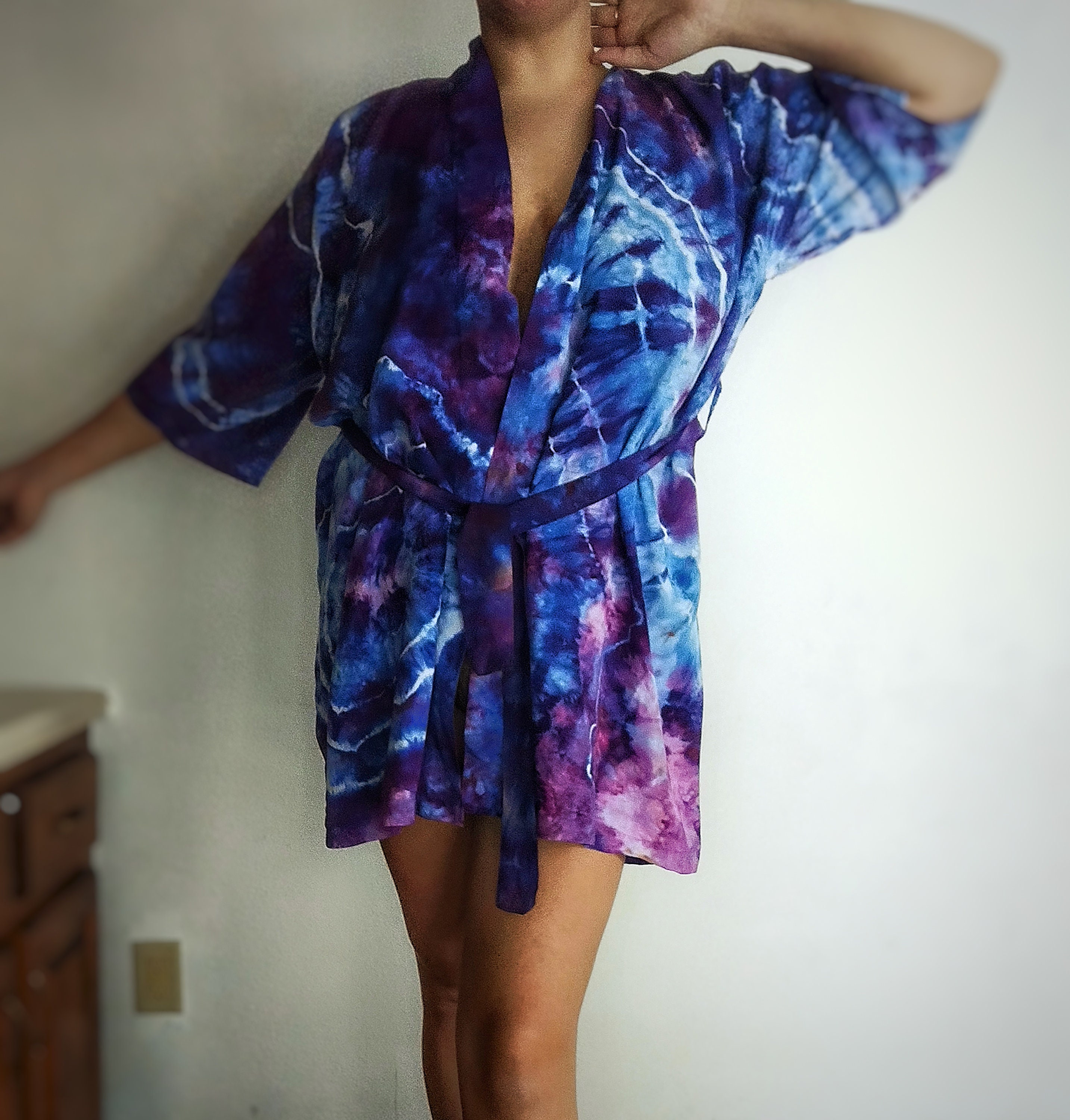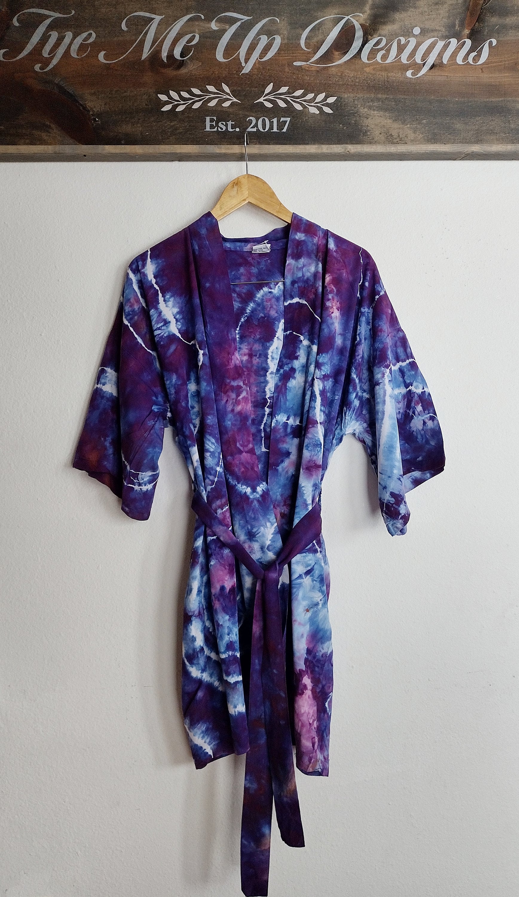Due to the nature of tie dye NO two pieces can be the same. There will be natural diffrences and each Robe will have it's own unique characteristics.