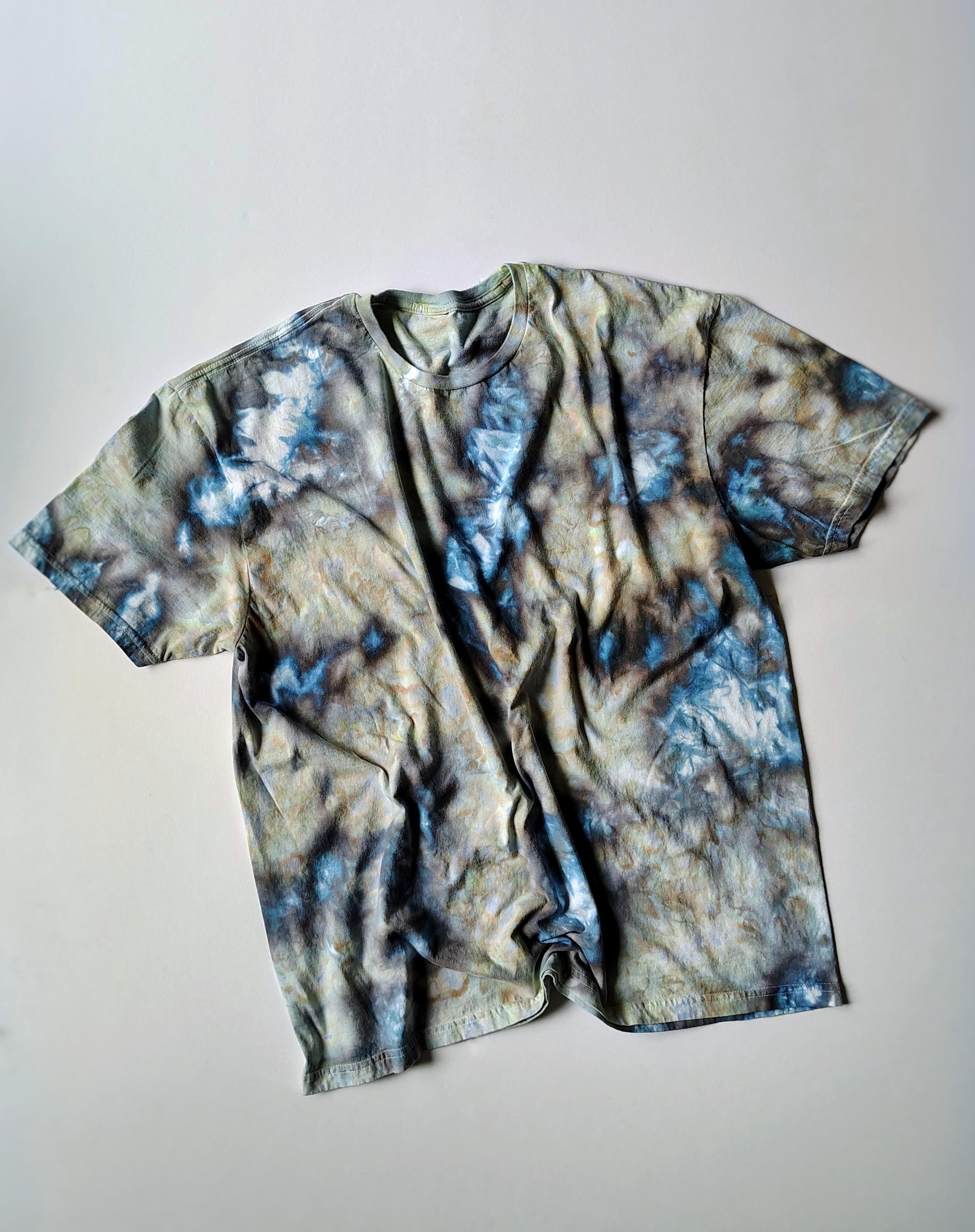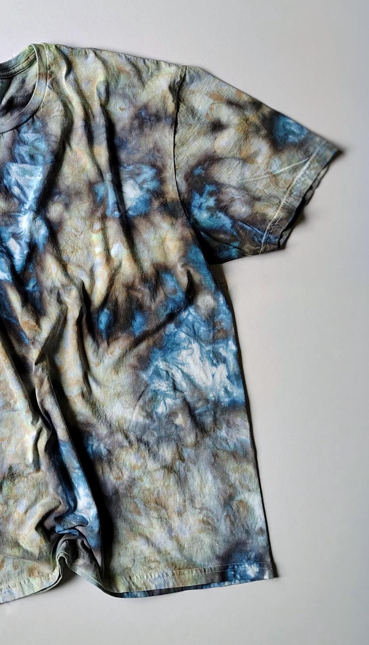 Hand Dyed Tie Dye T Shirt | Blue Grey Brown Ice Dye Tee | Unisex Unique Streetwear | Handmade Hippie Festival Clothing