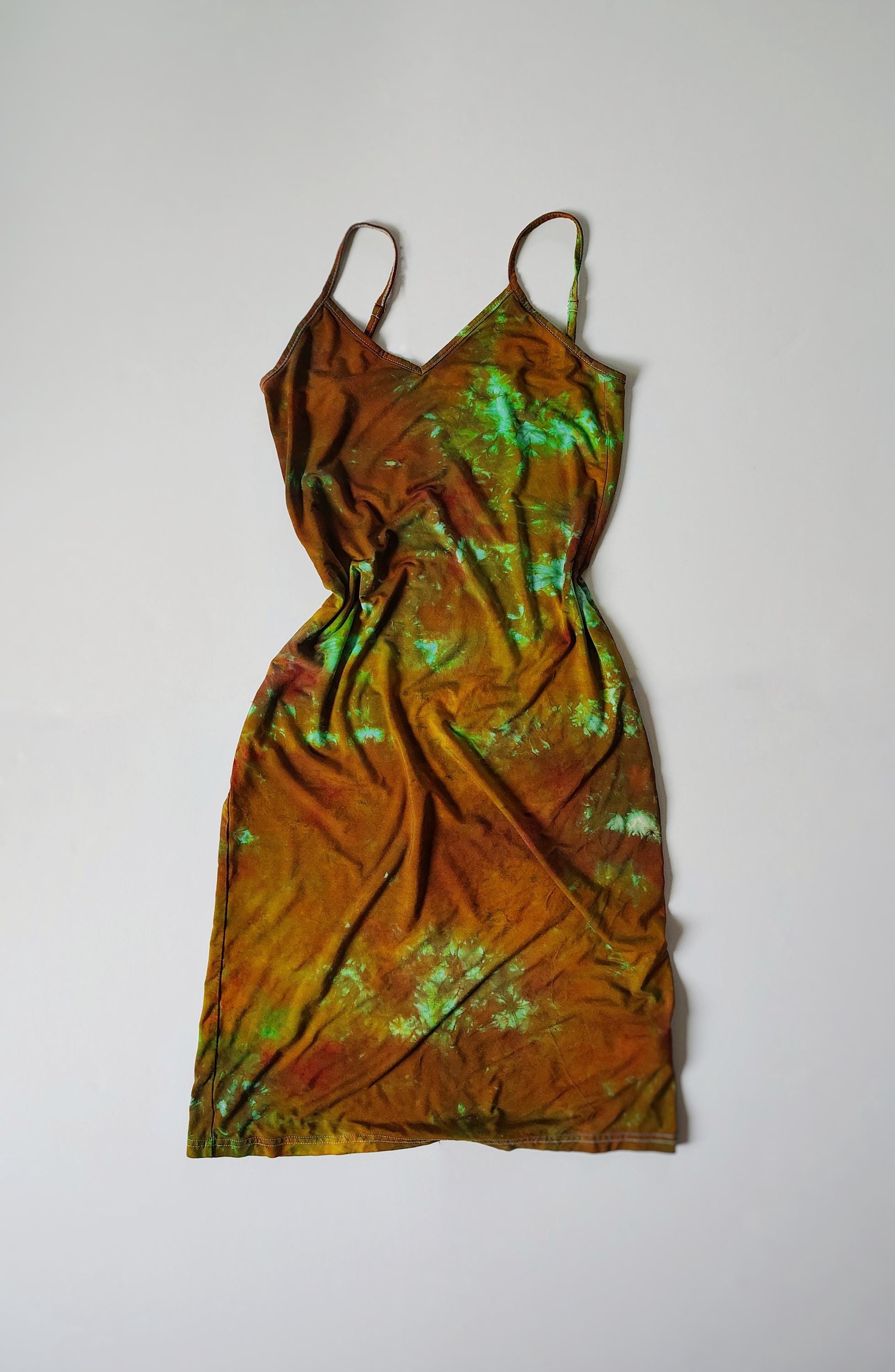 Handmade Tie Dye Slip Dress – Colorful Ice Dye Spaghetti Strap Mini Dress, Festival Outfit, Summer Boho Clothing, Unique One of a Kind Dress