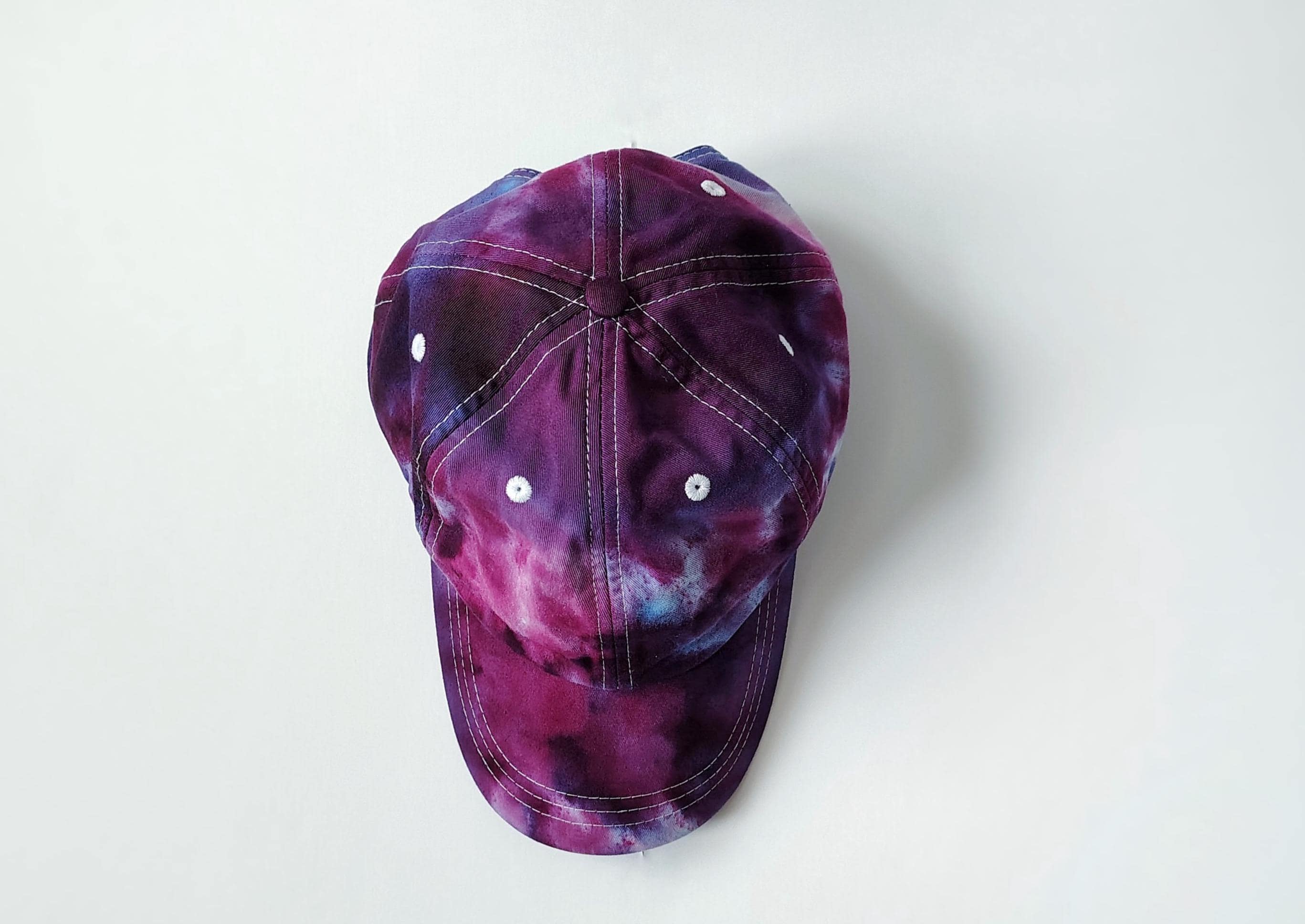 All of my work is ice dyed, so I work with the powder form of dye and place ice on top for the melt to slowly dye the fabric to create a watercolor affect. This means colors can split into indivdual color components.