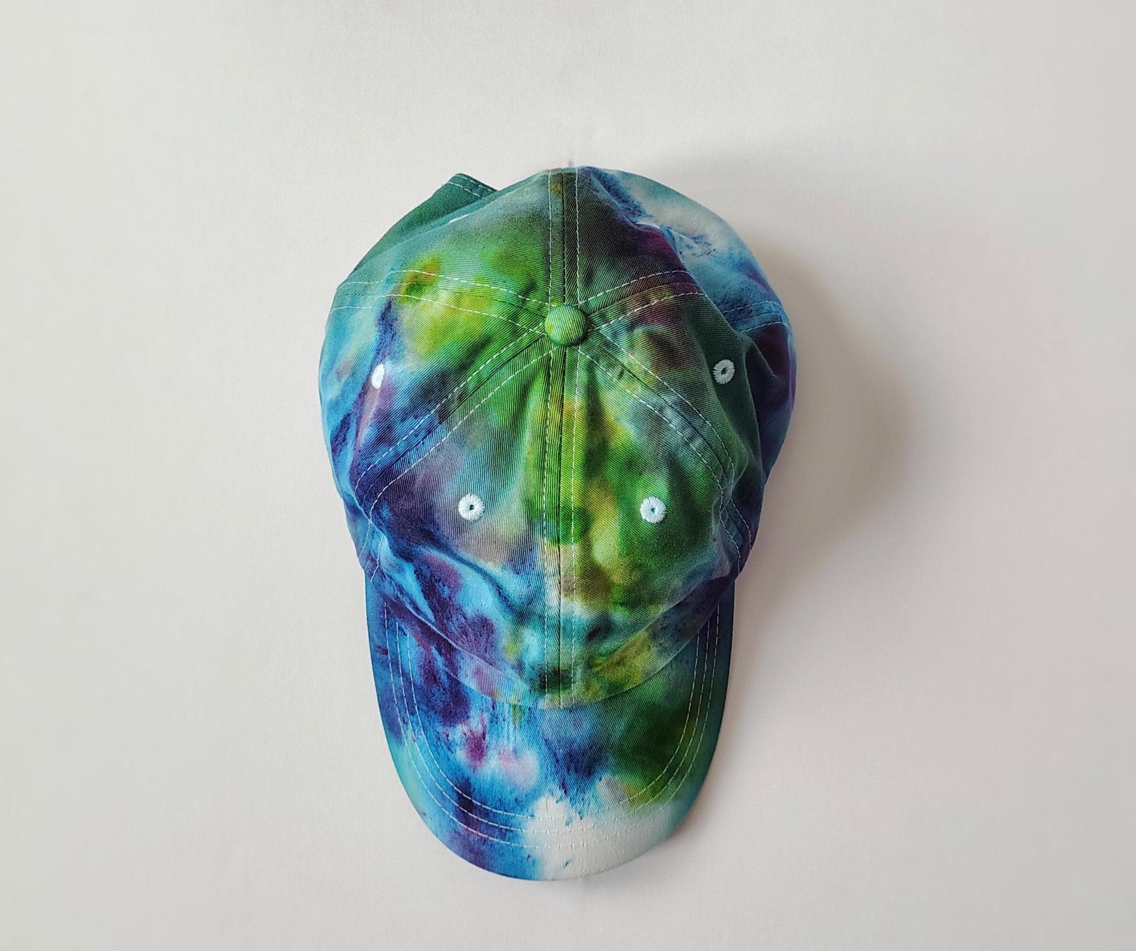 Ice dyed blue and green baseball cap, tie dye hat, vacation outfit