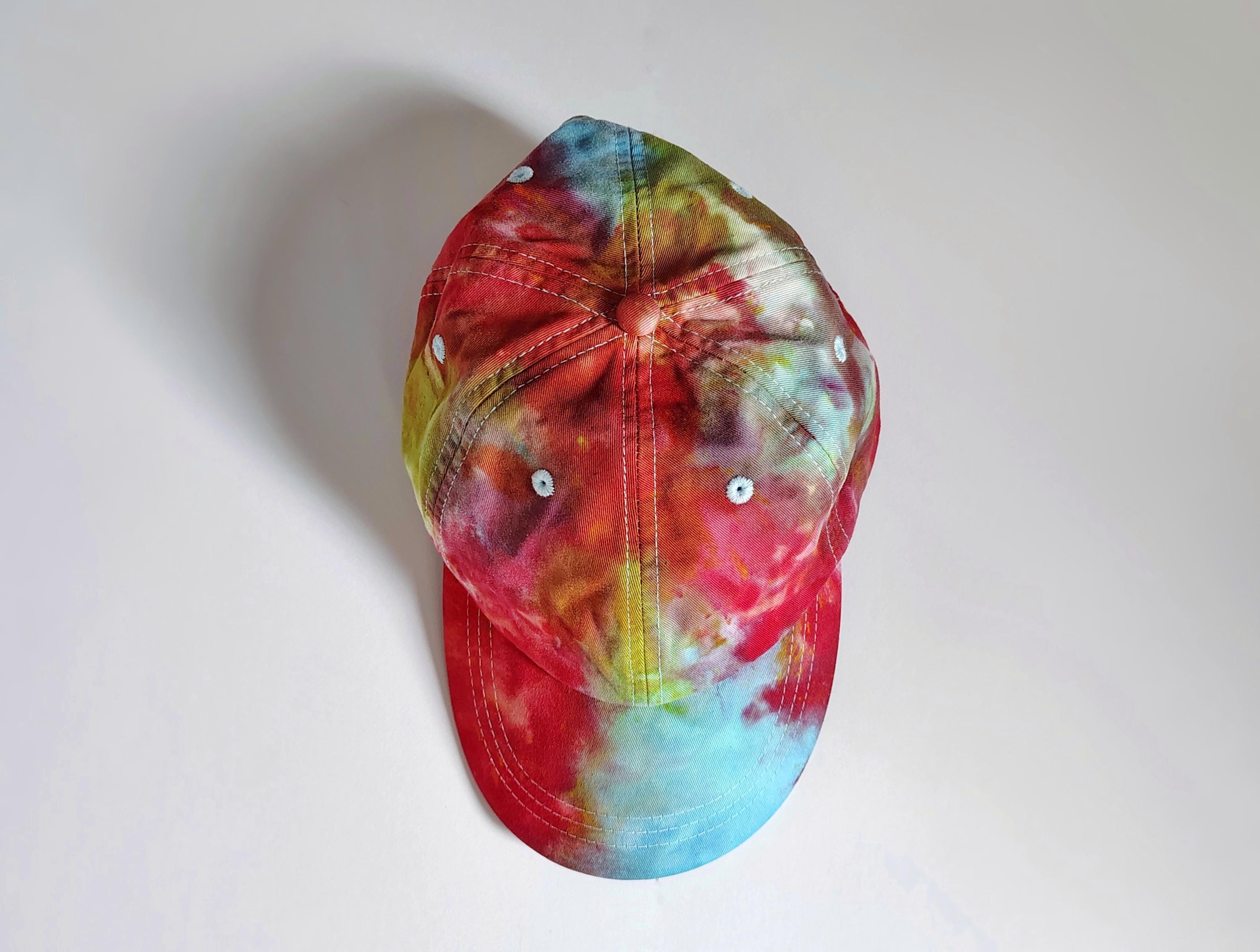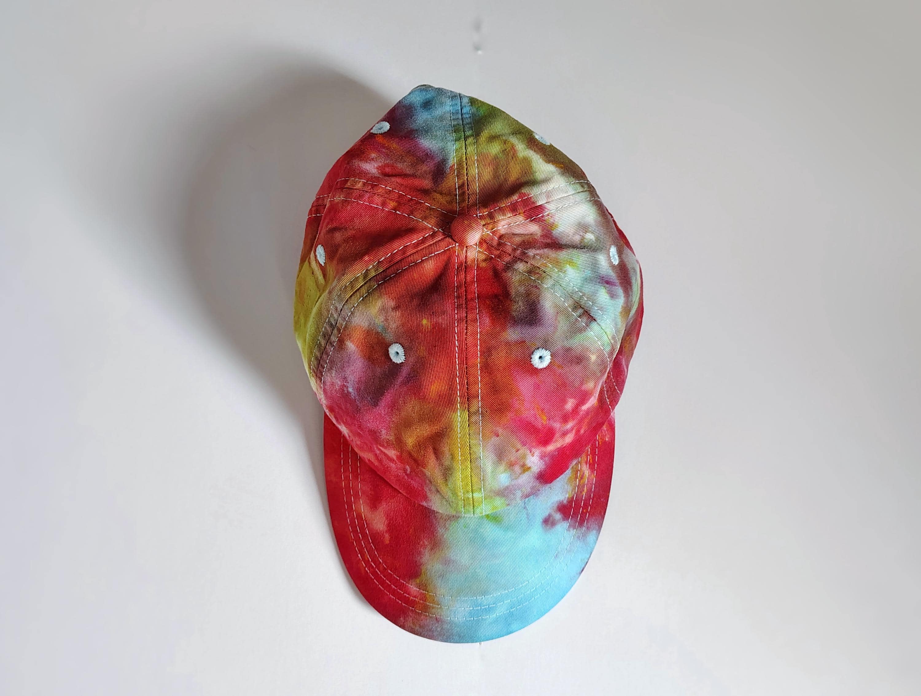 All of my work is ice dyed, so I work with the powder form of dye and place ice on top for the melt to slowly dye the fabric to create a watercolor affect. This means colors can split into indivdual color components.