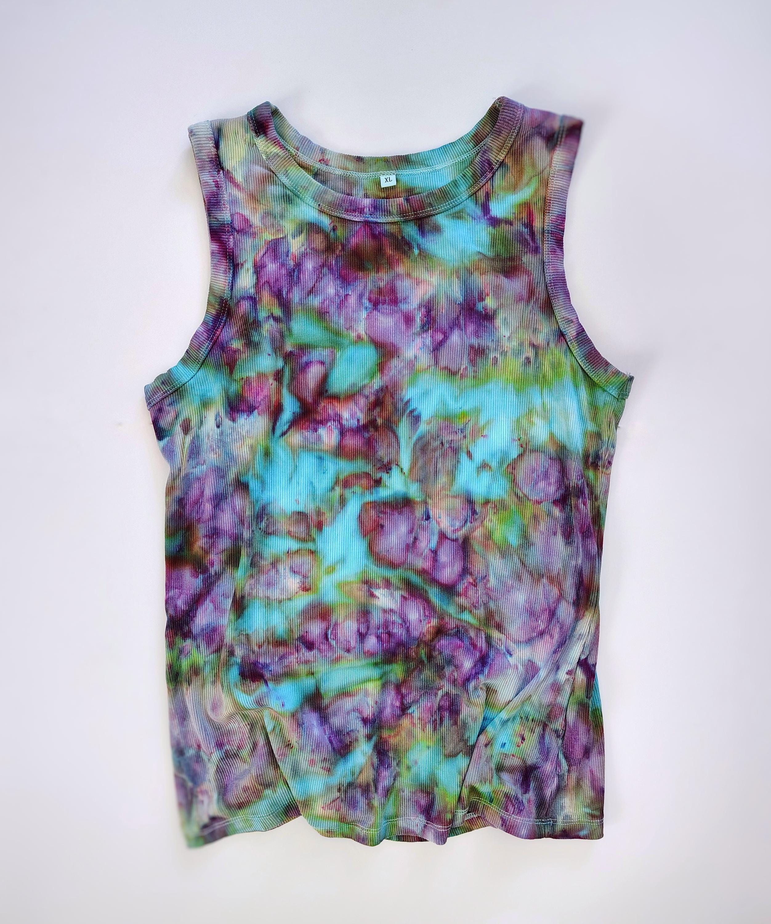 This ribbed racerback tank is hand-dyed in small batches, making every piece completely one-of-a-kind. Designed with a flattering high neckline and soft stretch fit, it’s the perfect mix of comfort and style—whether you’re layering it or wearing it solo all summer long.