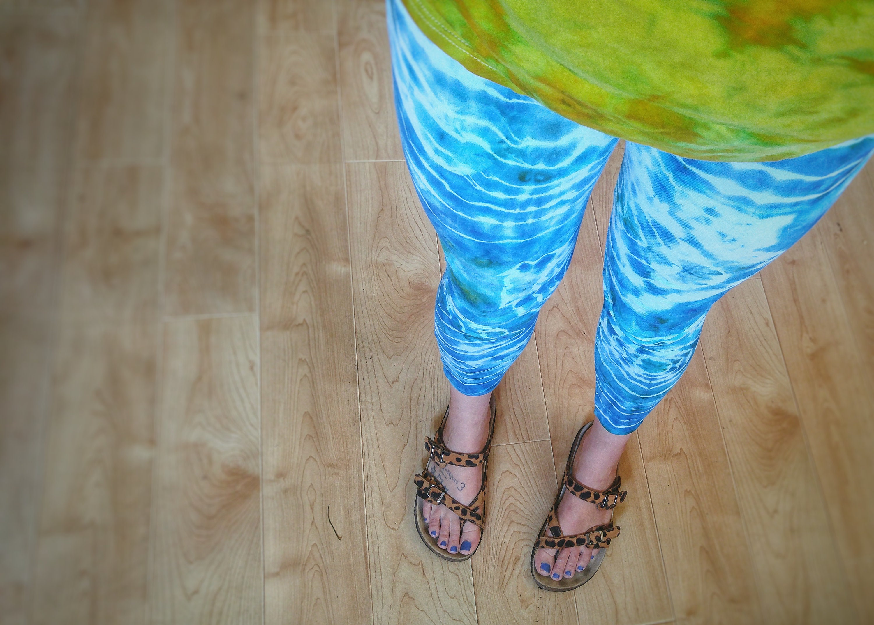 I bought these leggings to match the T-shirt I had gotten a while back. While the colors are beautiful and the leggings fit otherwise, they are a bit short on my 5'8" frame.