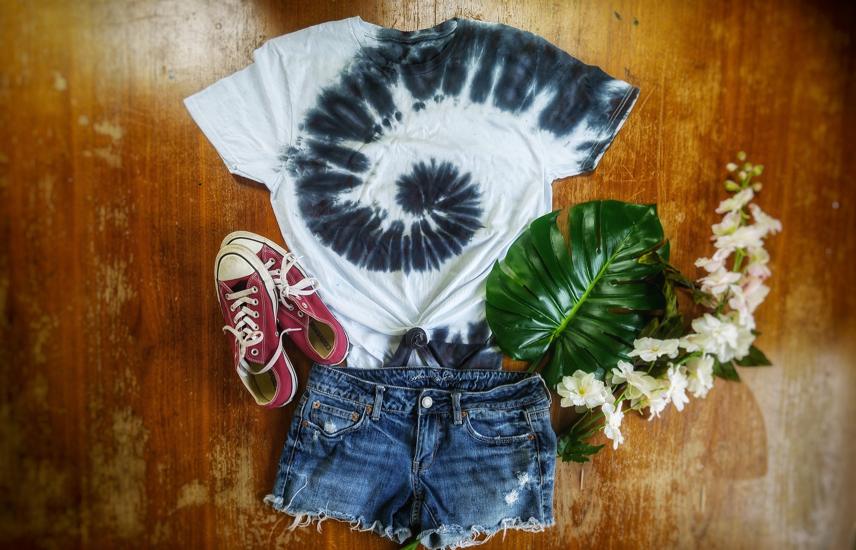 Women's Tie Dye Shirt | Hippie Clothes | Black and White Tie Dye T-shirt