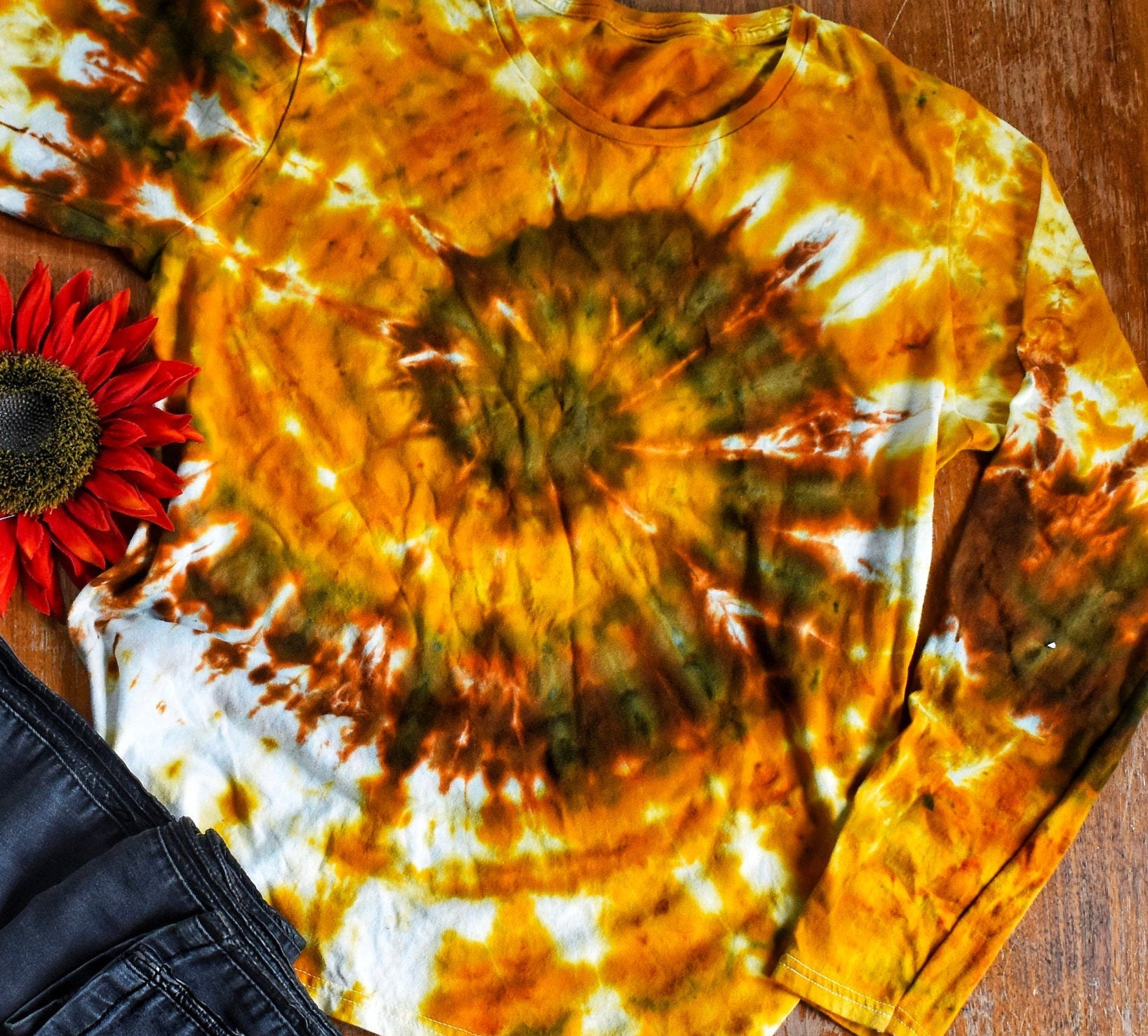 I use only high-quality, soft jersey knit cotton T-shirt blanks for a comfortable and long-lasting product. Each shirt is made to order with a two-week processing time. Due to the nature of tie-dye, no two pieces are identical—each has unique characteristics.